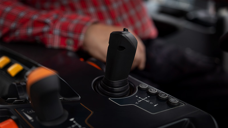 Que vous deviez charger du fumier rapidement ou déplacer une palette avec soin, le joystick intégré à l’accoudoir vous offre un contrôle rapide et précis.